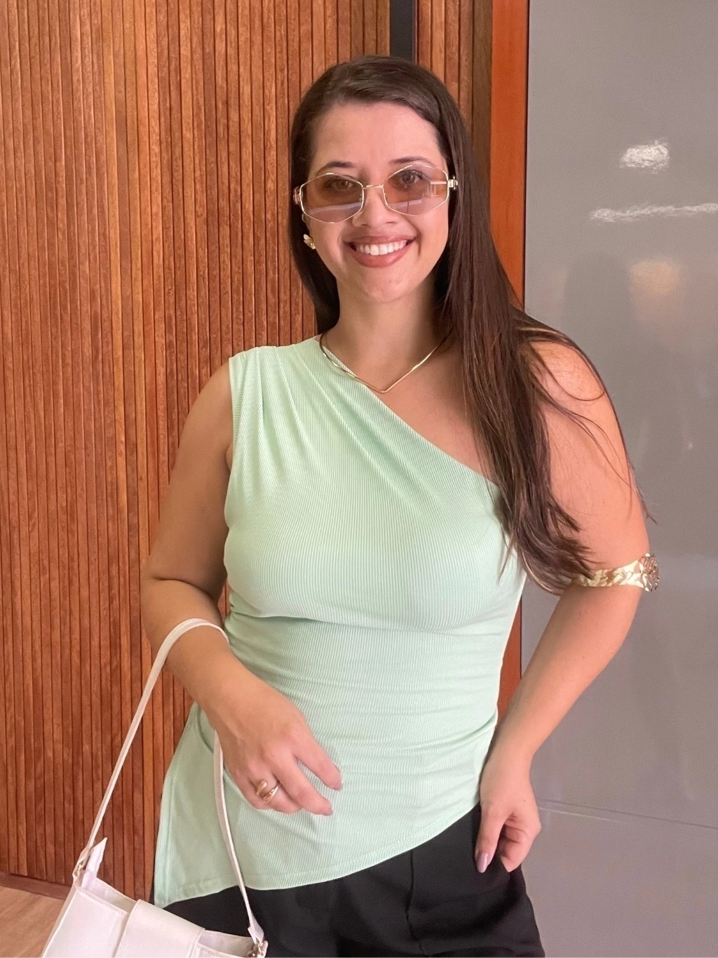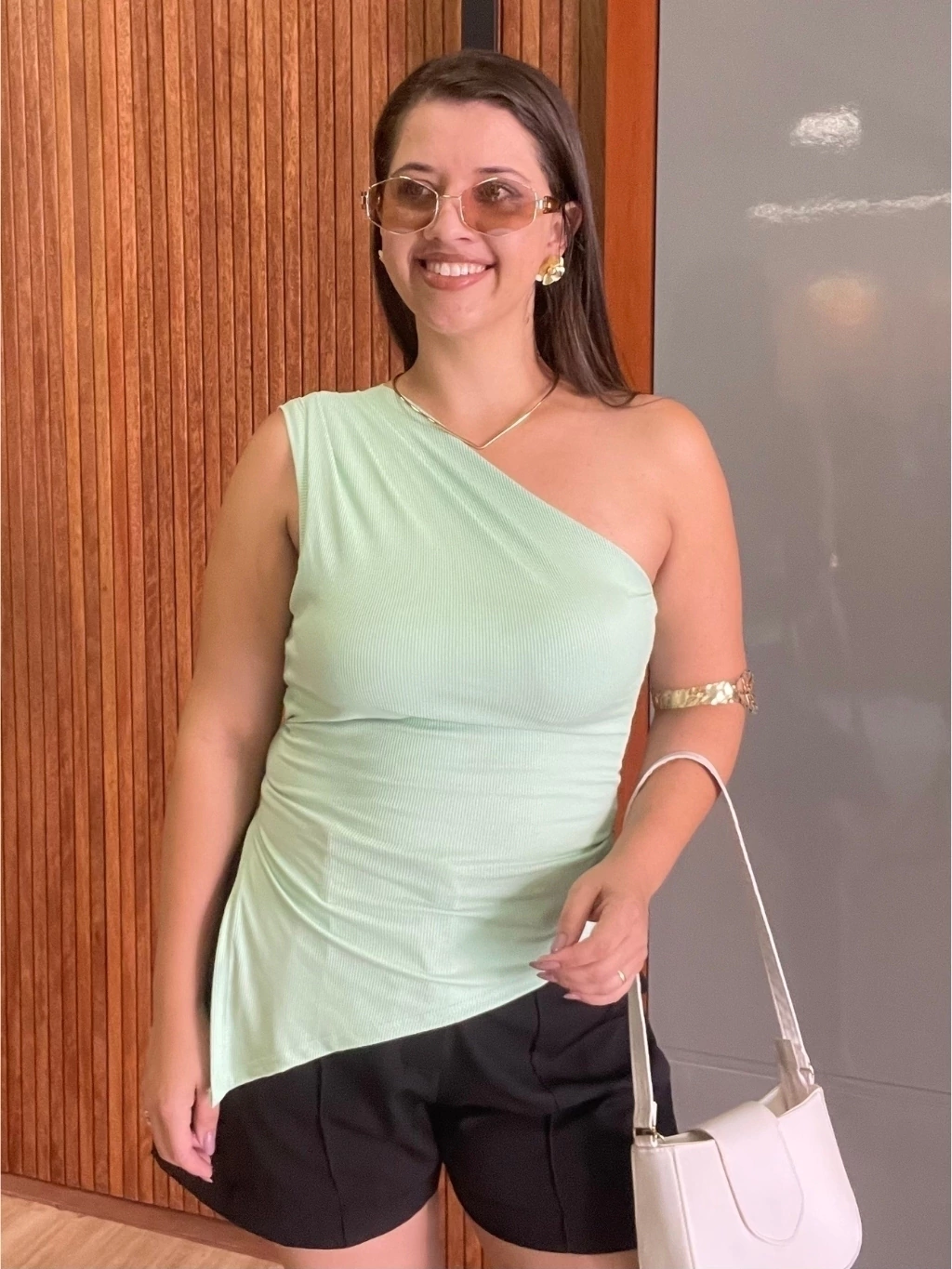 Confeccionada em ribaninha, a Blusa Assimétrica une conforto e estilo. O bojo embutido traz praticidade, enquanto o drapeado no ombro adiciona um charme especial.