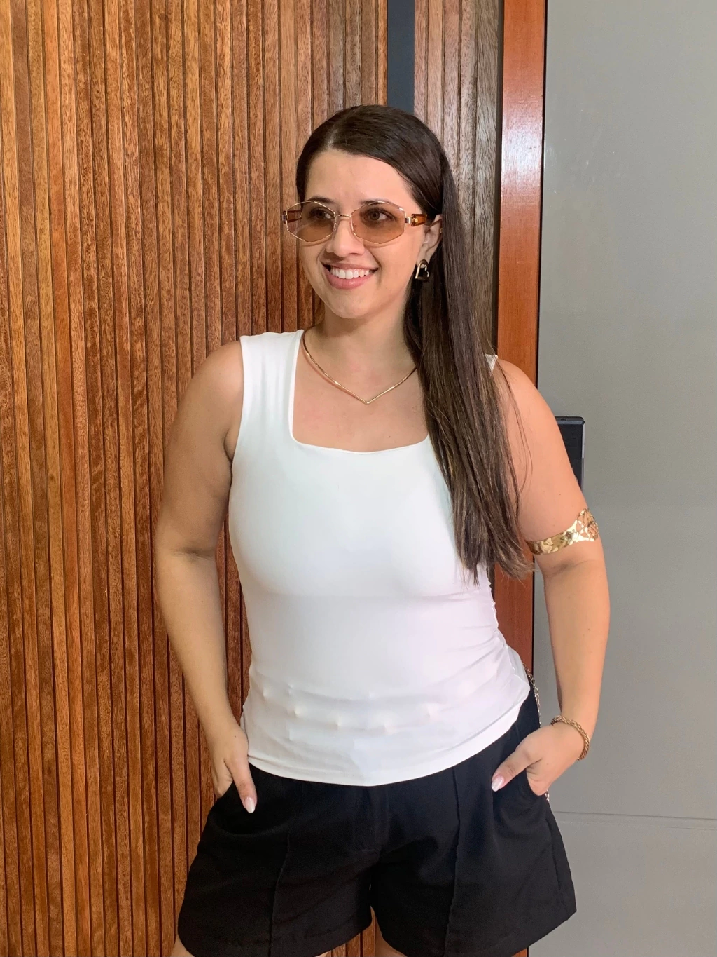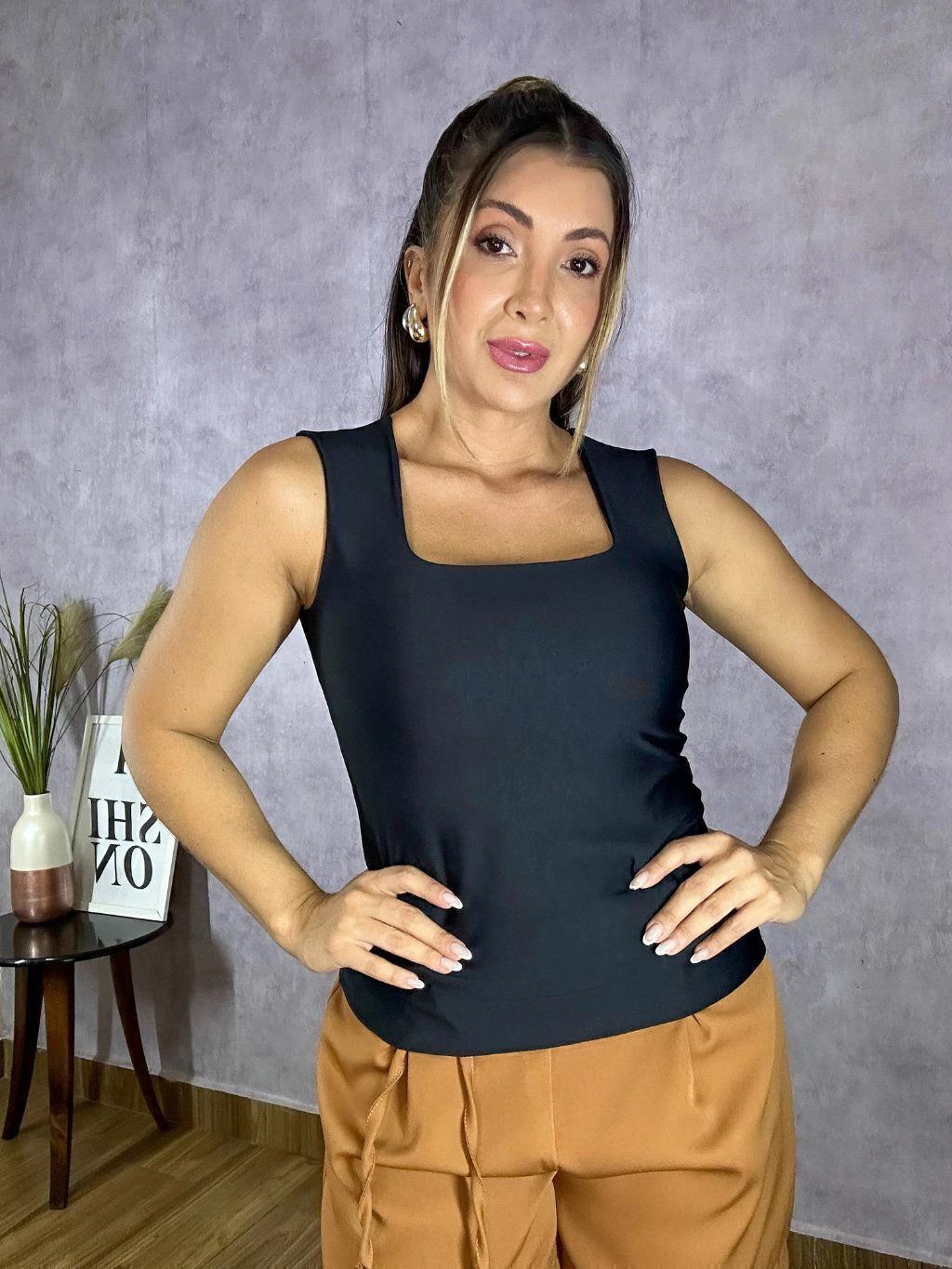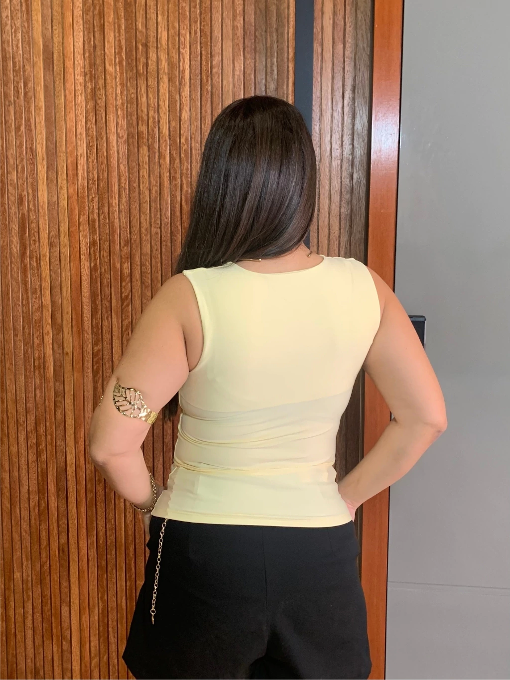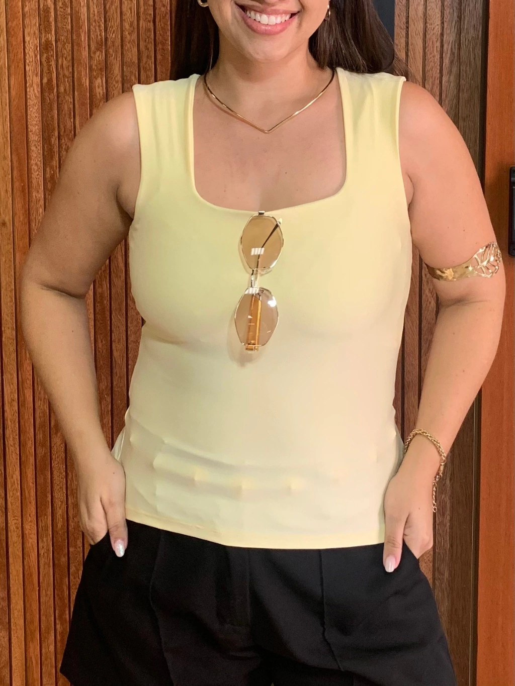 Seu decote quadrado valoriza o colo, enquanto o forro no busto garante segurança e ótimo acabamento.
