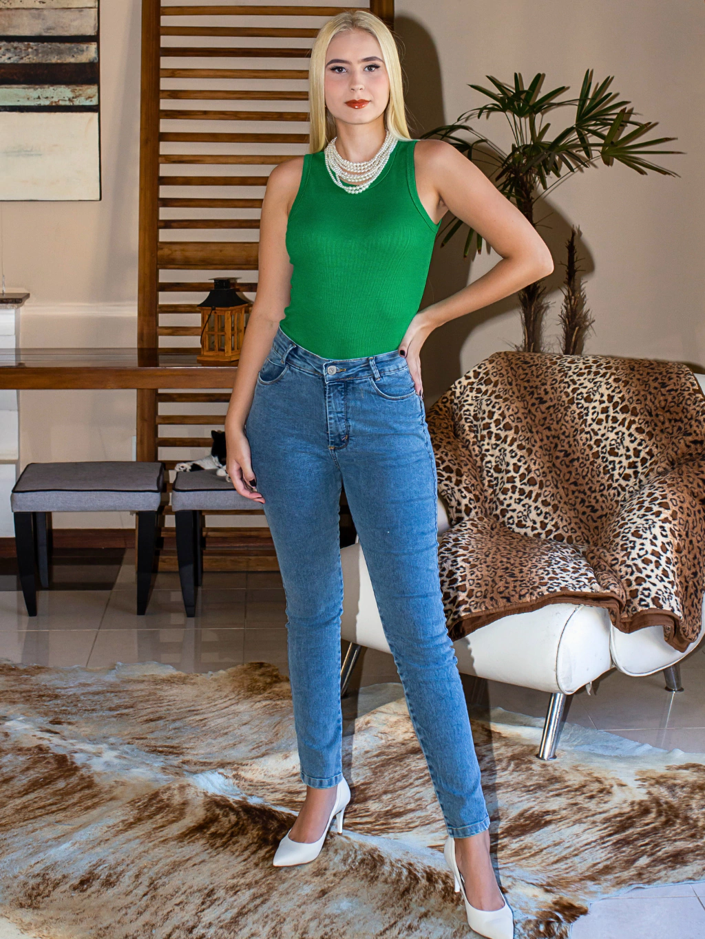 Confeccionada no jeans com elastano é um modelo mais colado no corpo que te permite COMBINAR COM TUDO.
