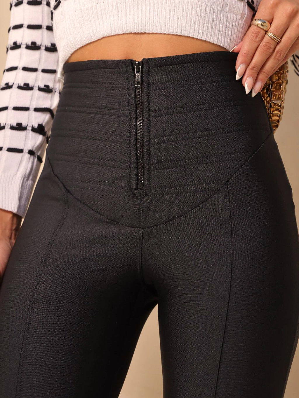 Seu zíper na barra adiciona um toque de versatilidade ao seu look.