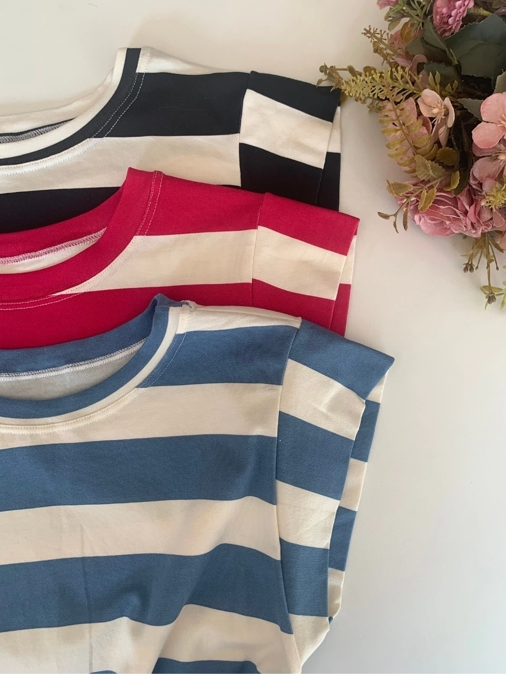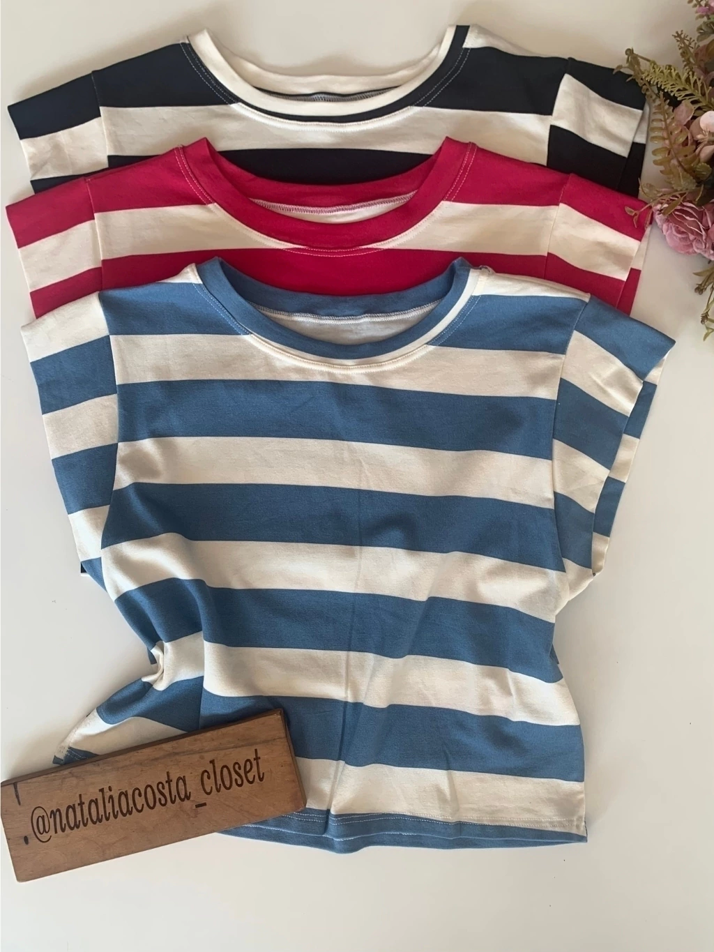Seu design traz listras grossas que dão personalidade à peça, enquanto a modelagem muscle valoriza os ombros de forma elegante e descontraída.
