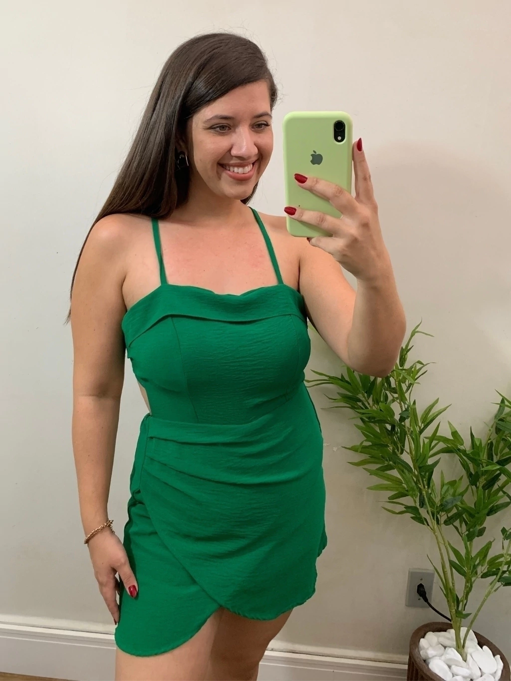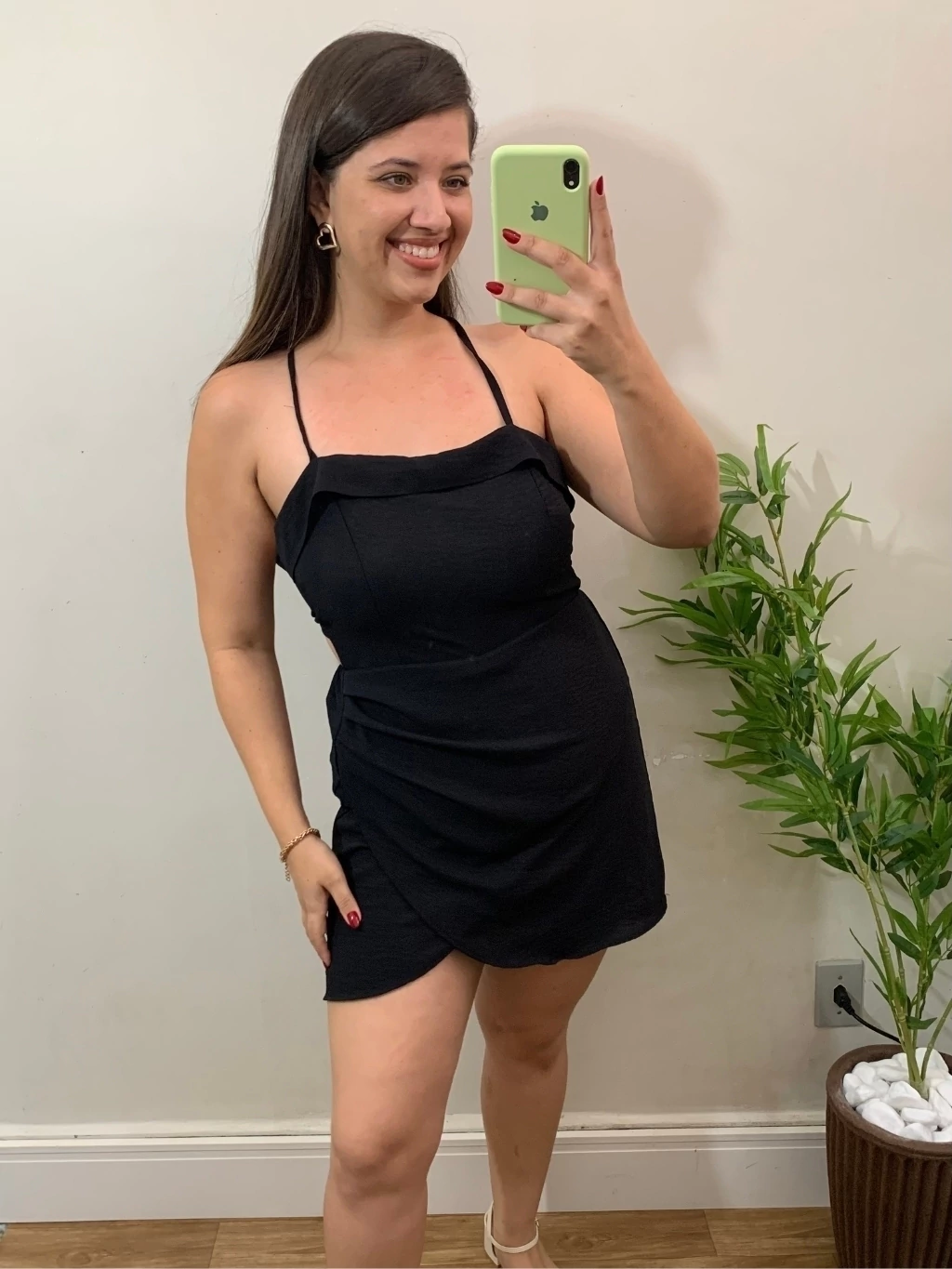 O Macaquinho de Alcinha Cléo combina elegância e praticidade em um design moderno. O short por baixo garante conforto e segurança, enquanto o recorte reto no busto adiciona sofisticação na medida certa.