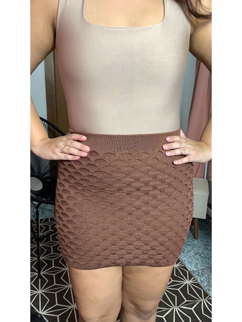 A Saia Curta em Tricô Modal é a peça ideal para quem busca conforto e estilo!