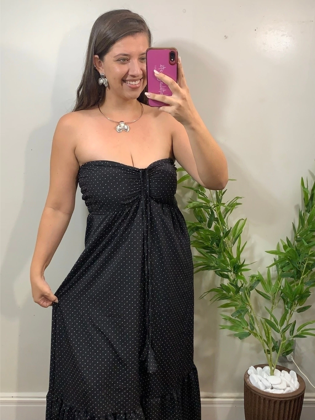 Versátil, é 2 em 1 pode ser usado como tomara que caia ou amarrado no pescoço, adaptando-se ao seu estilo e ocasião. O modelo fluido proporciona liberdade de movimento e leveza ao look.