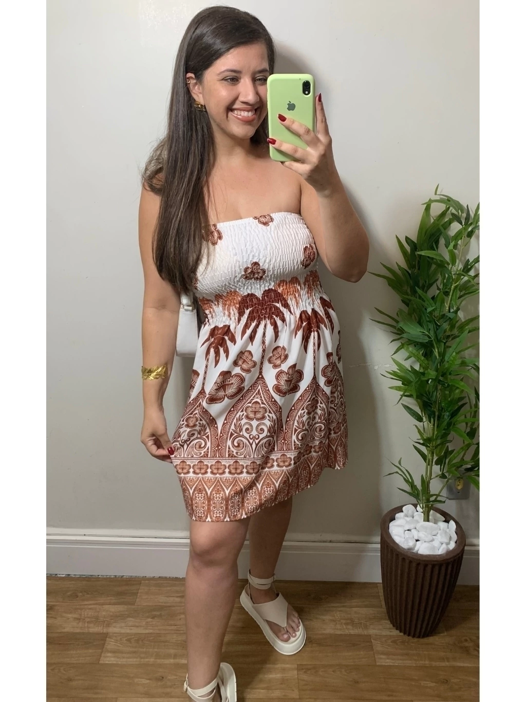 Com modelagem evasê e soltinha, o vestido não marca a barriga e proporciona leveza ao visual. Tamanho único, veste do 36 ao 44 com caimento impecável.